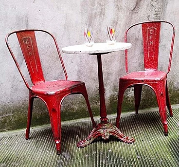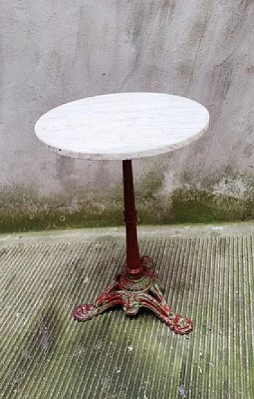 Tavolo rotondo da bistrò con base in ghisa e piano in marmo, anni '50