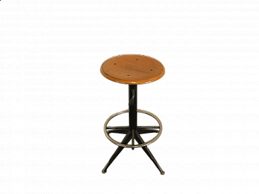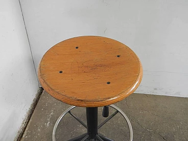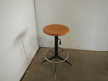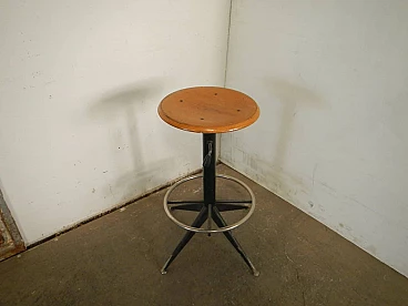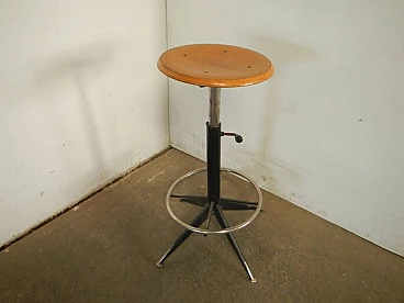 Sgabello regolabile in metallo con seduta in faggio, anni '70