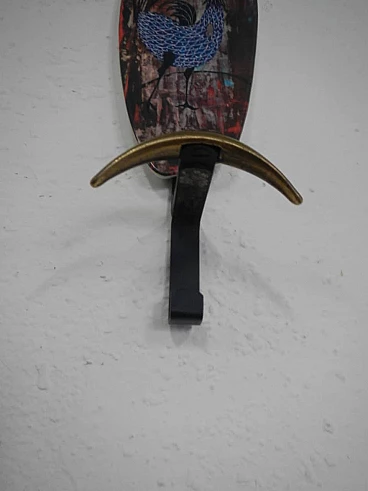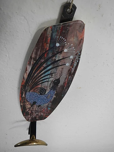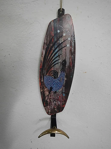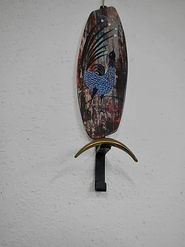 Appendiabiti da parete in bachelite e metallo con pavone, anni '60