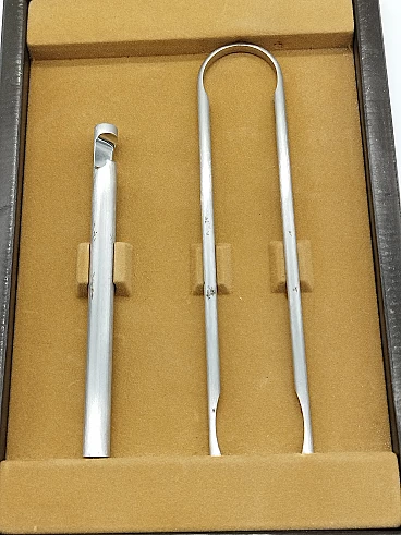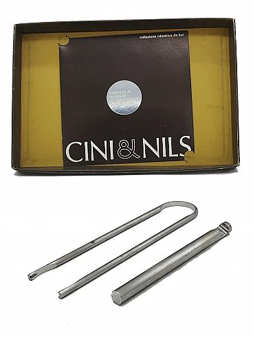 Set da bar da collezione progettato nel 1969 da F. Bettonica e M. Melocchi - Studio OPI Milano per Cini & Nils Italia. Esposto al MoMA di New York nel 1969. Set da bar in due pezzi in moderno acciaio inossidabile. Gli strumenti comprendono: pinze per il ghiaccio e apribottiglie.