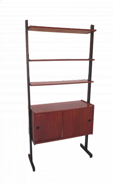 Libreria in teak con struttura in tubolare metallico, anni '60
