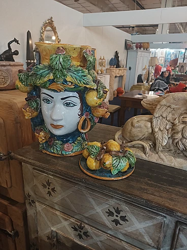 Coppia di vasi Teste di Moro con coperchio in ceramica di Caltagirone