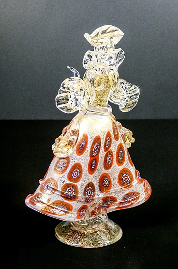 Coppia di figure goldoniane, Cavaliere e Dama in vetro soffiato policromo di Murano, primo '900