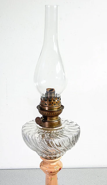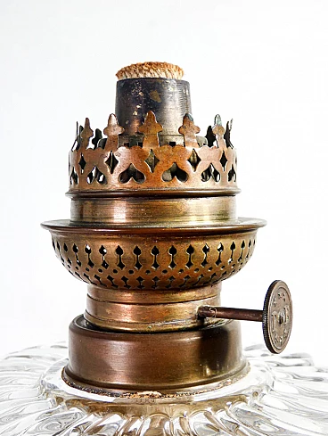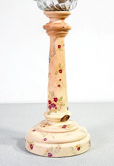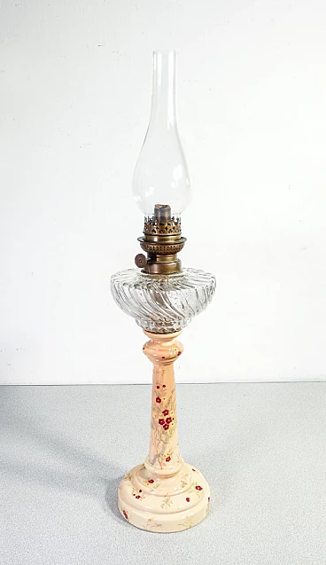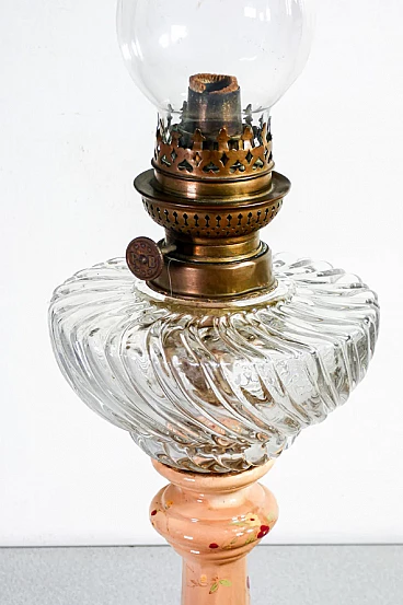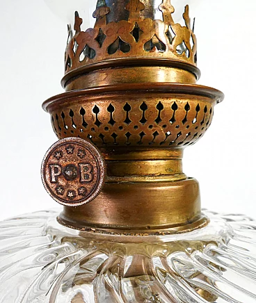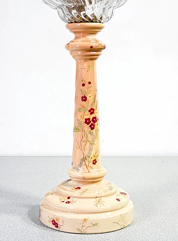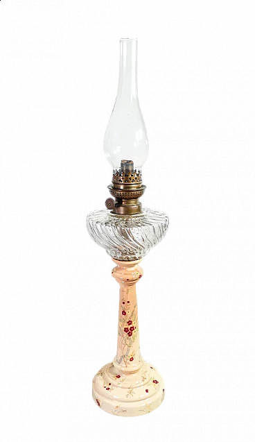 Lume a petrolio in ceramica smaltata, bronzo e vetro di P&B, primo '900