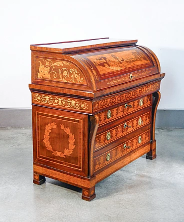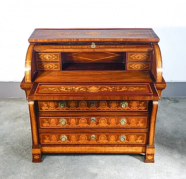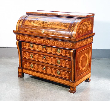 Secrétaire Impero in noce impiallacciato e intarsiato, fine '700