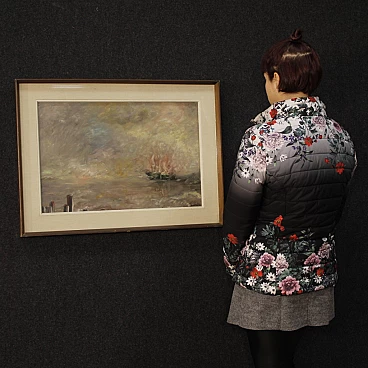 Paesaggio marittimo in stile Impressionista, dipinto a olio su tela