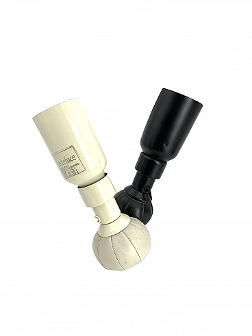 Coppia di lampade da tavolo bianco e nero mod. 600/P progettato dal maestro Gino Sarfatti, prodotto dalla propria Arteluce. Estremamente raro trovare 2 600 / P in vendita come un lotto unico. Progettato nel 1966, prodotto nel 1960 - 1969 - Esposto alla 14a Triennale di Milano, maggio 1968 - Alluminio laccato. La base in pelle è riempita con piccole sfere di piombo che permettono alla lampada di muoversi in varie posizioni. Ref.: Catalogo Arteluce 1966, p. 36; Domus 467 (ottobre 1968), p. 32; Marco Romanelli, Sandra Severi, Gino Sarfatti opere fare delle predizioni 1938-1973, Silvana Ed., Cinisello Balsamo, 2012, p. 439. 20,5 x 6 x 6 cm Condizioni: molto buono. Piccole ammaccature sulla lampada nera. Fili lunghi originali.