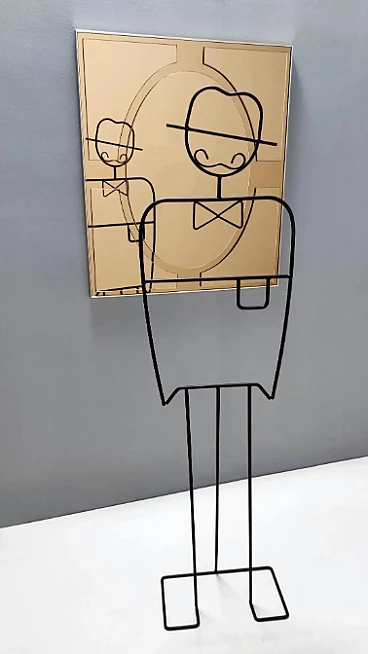Specchio da parete rettangolare in bronzo di Giannobi, anni '80