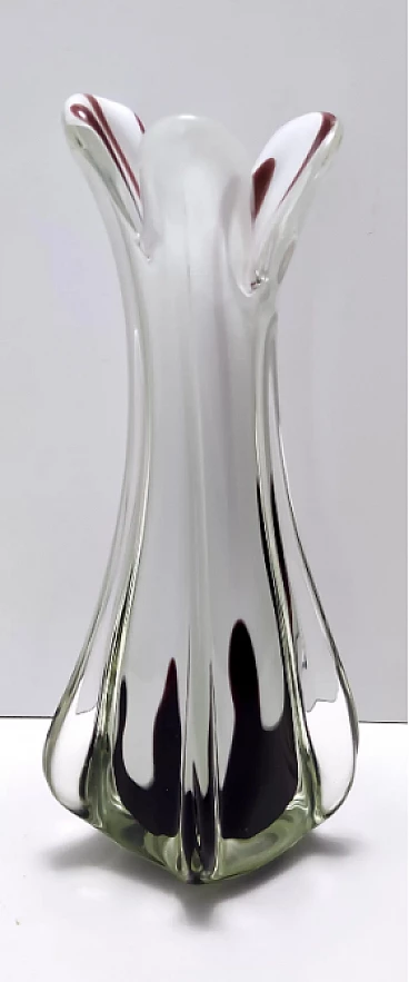 Vaso in vetro soffiato a mano bianco Sommerso dei Fratelli Toso, anni '60