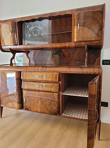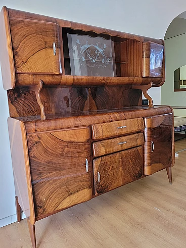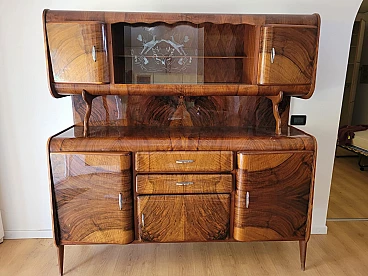 Credenza a due corpi in legno curvato con vetrina, anni '40