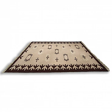 Tappeto Kelim beige e marrone, anni '70