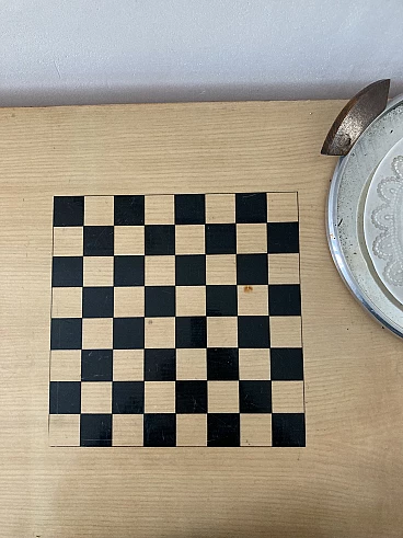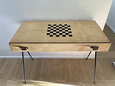 Scrivania da gioco in legno biondo con scacchiera, anni '60