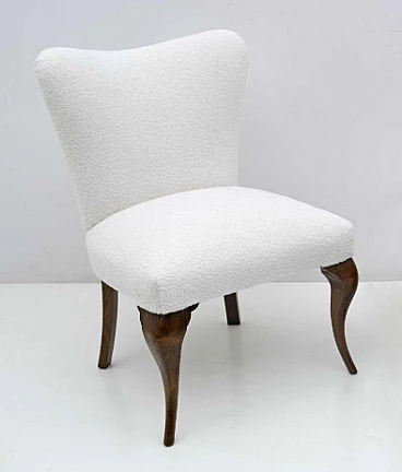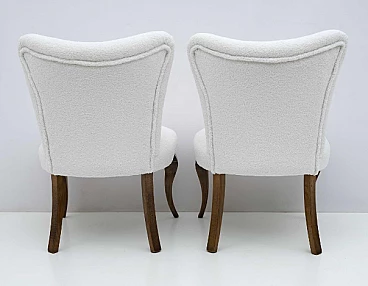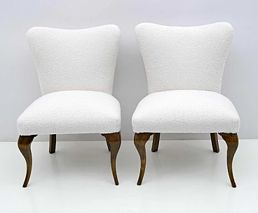 Coppia di sedie stile Chippendale in legno e bouclé bianco, anni '40
