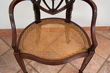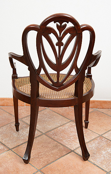 Poltrona in massello di mogano con seduta in paglia di Vienna, fine '800