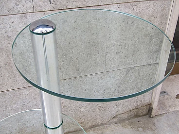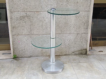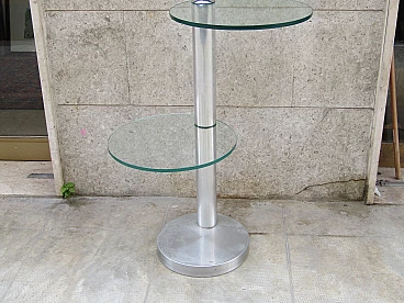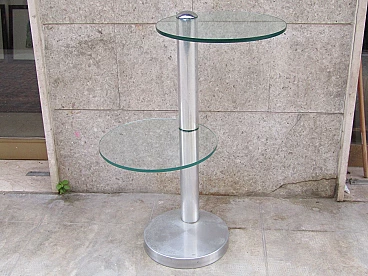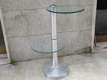 Tavolino in acciaio con doppio ripiano in cristallo, anni '70