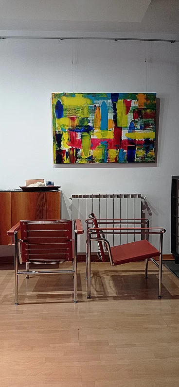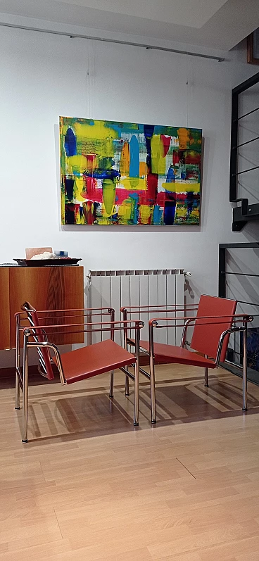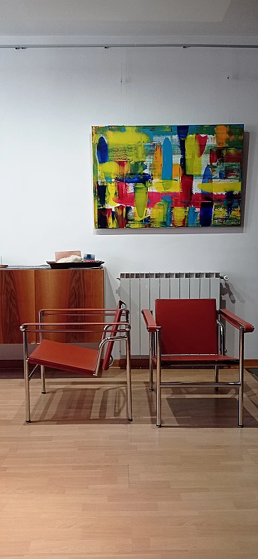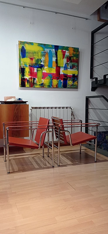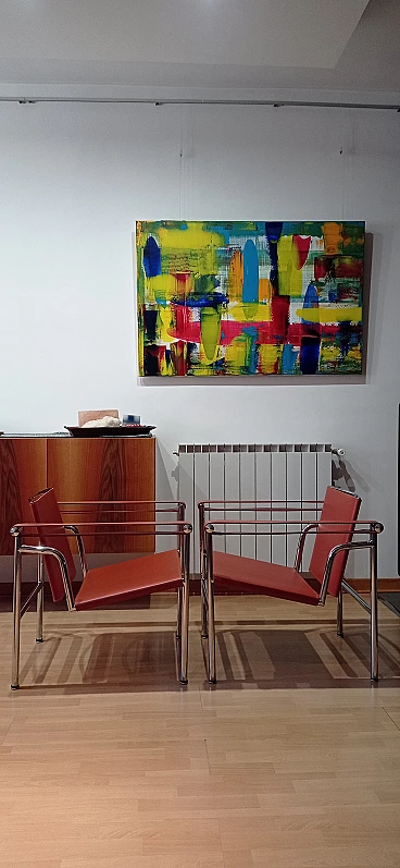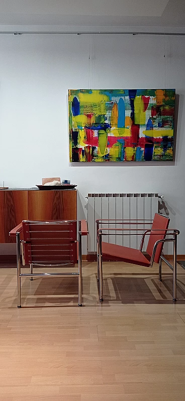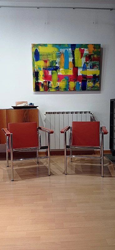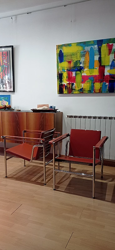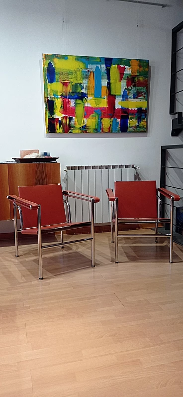 Coppia di poltroncine LC1 in cuoio di Le Corbusier, P. Jeanneret e C. Perriand per Alivar, anni '80 129