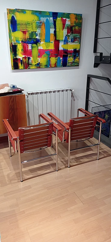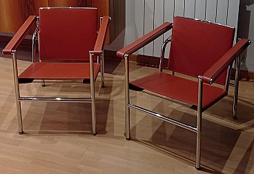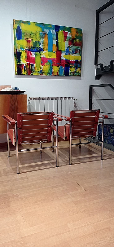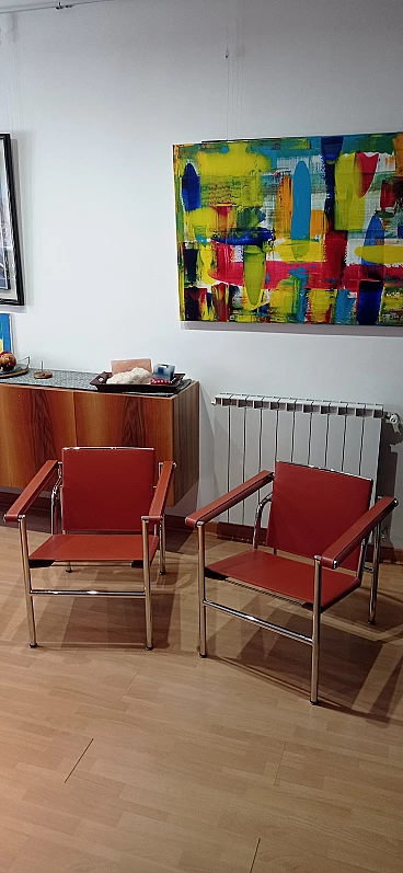 Coppia di poltroncine LC1 in cuoio di Le Corbusier, P. Jeanneret e C. Perriand per Alivar, anni '80 68