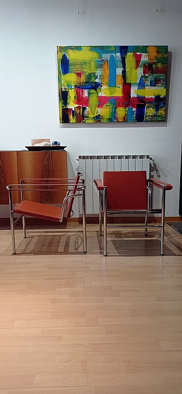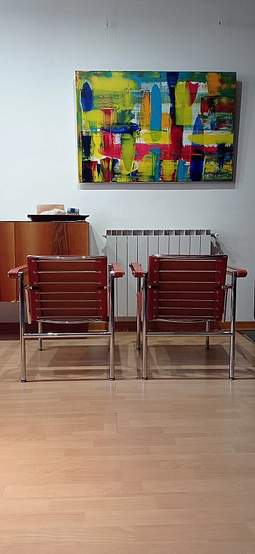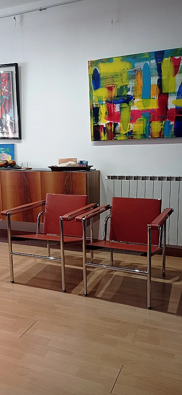 Coppia di poltroncine LC1 in cuoio di Le Corbusier, P. Jeanneret e C. Perriand per Alivar, anni '80 62
