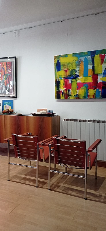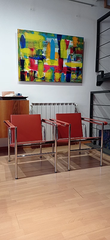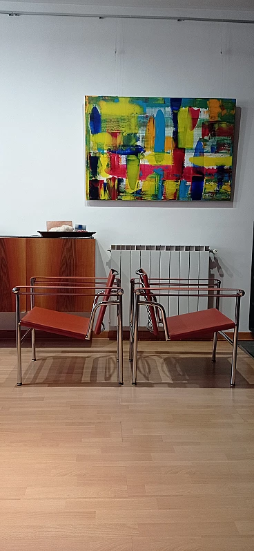 Coppia di poltroncine LC1 in cuoio di Le Corbusier, P. Jeanneret e C. Perriand per Alivar, anni '80 135