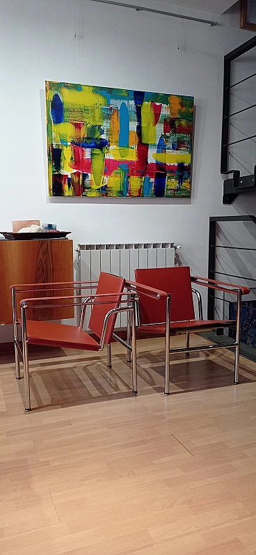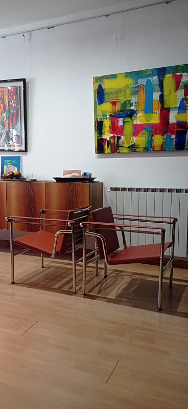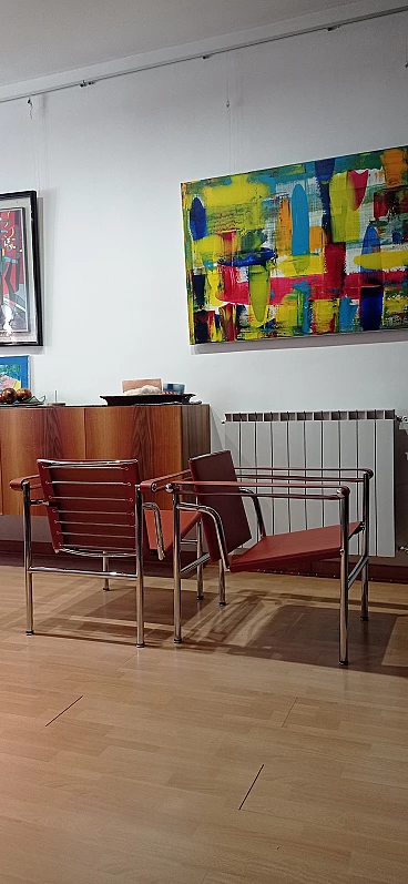 Coppia di poltroncine LC1 in cuoio di Le Corbusier, P. Jeanneret e C. Perriand per Alivar, anni '80 133