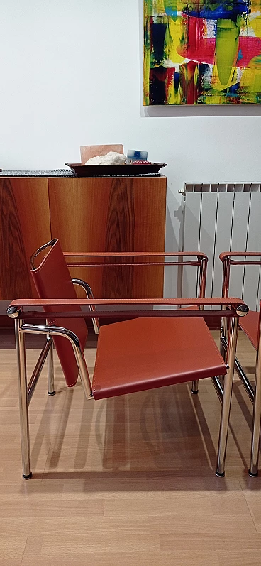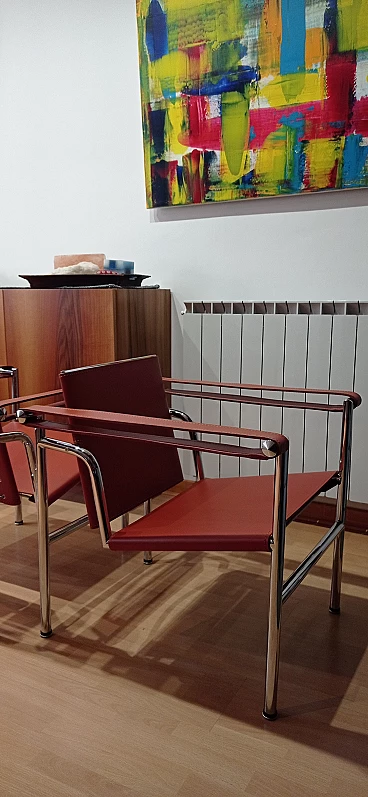 Coppia di poltroncine LC1 in cuoio di Le Corbusier, P. Jeanneret e C. Perriand per Alivar, anni '80 132