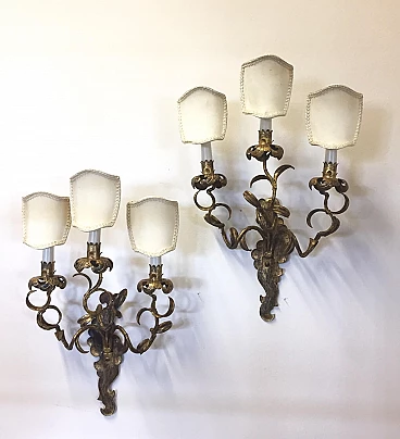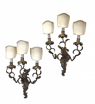 Coppia di appliques anni '40 in ferro battuto dorato