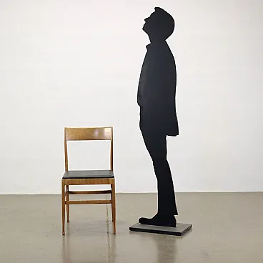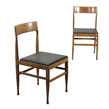 Coppia di sedie in faggio tinto con seduta in similpelle, anni '60