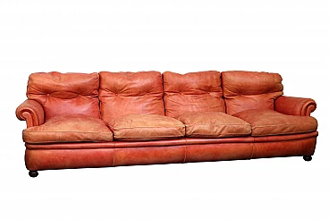 Bel divano a 4 posti di Poltrona Frau, modello "Dream" in pelle color arancio. Il divano è solido e funzionale è stata cambiata l'imbottitura da Poltrona Frau nel 2014. La pelle è stato originale con il fascino dell’usura. Sul retro piccola escoriazione vedi foto. Internamente bottoni e cinghie di collegamento cuscini da rivedere, disponibili ricambi originali.