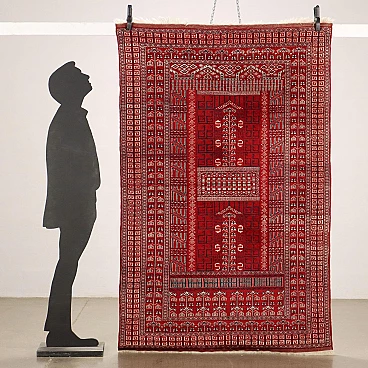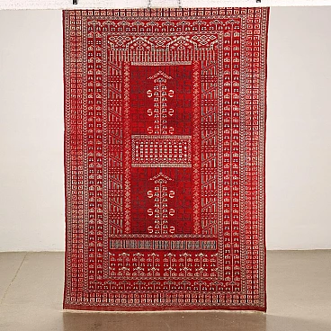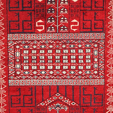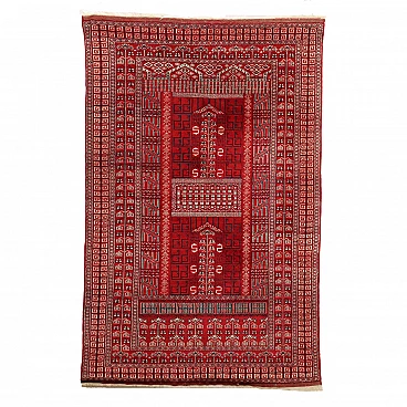 Tappeto Bukhara pakistano rosso in lana e cotone