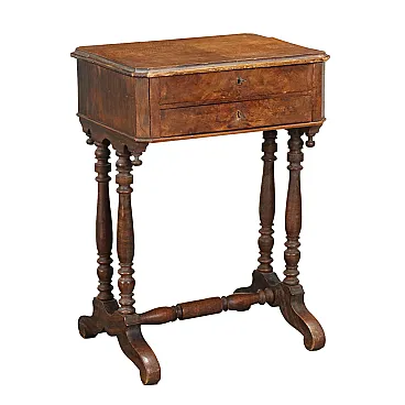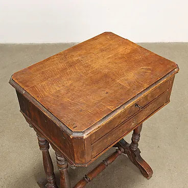 Tavolino da lavoro Luigi Filippo in noce e abete laccato, metà '800