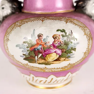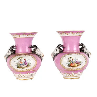 Coppia di vasi in porcellana policroma di KPM Berlin, inizio '800