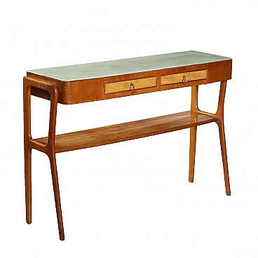 Consolle in massello di faggio e mogano impiallacciato, anni '60