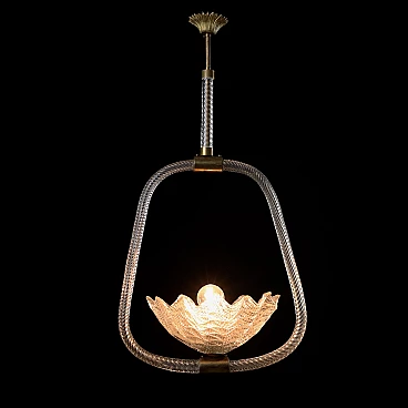 Lampada da soffitto in vetro soffiato e ottone.