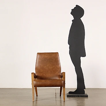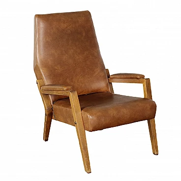 Poltrona con struttura in legno e rivestimento in skai, anni '60