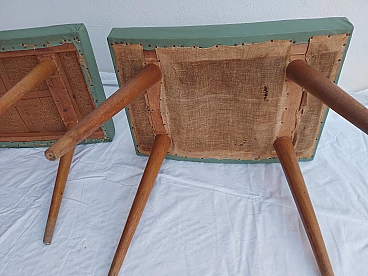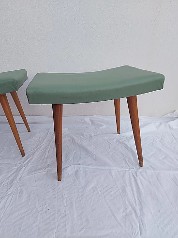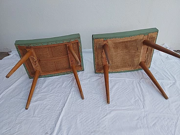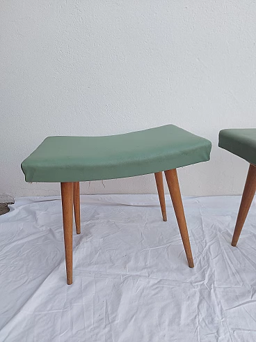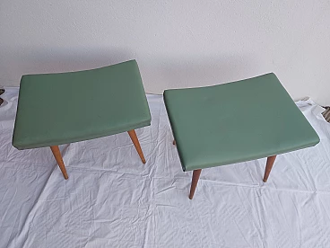 Coppia di sgabelli in faggio e ciliegio con seduta in similpelle, anni '50