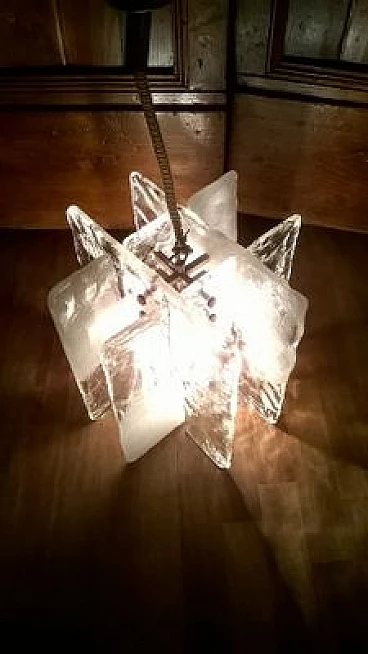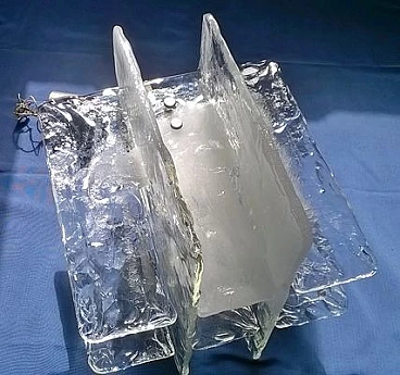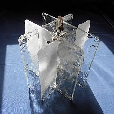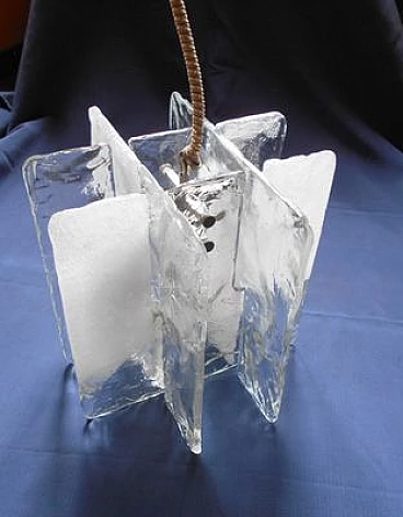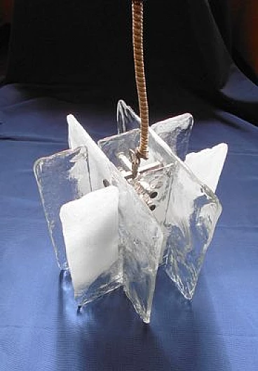 Lampadario in vetro di Murano trasparente e bianco di Carlo Nason per Mazzega, anni '70