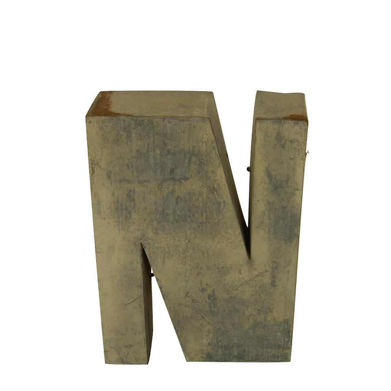 Lettera "N" maiuscola da muro realizzata in latta, anni '70.