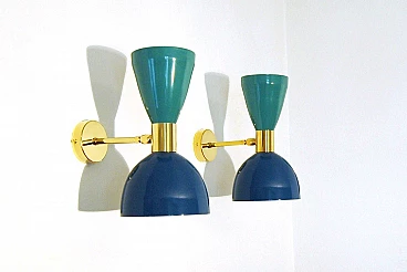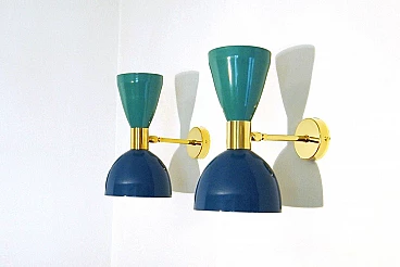 Applique in ottone e metallo laccato blu e verde di Deyroo Lighting