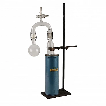 Strumento da laboratorio chimico in vetro, ferro e ottone
