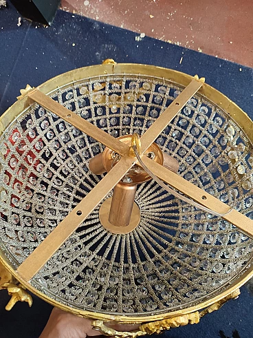 Plafoniera in bronzo con prismi di vetro in stile Impero, anni '70