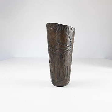 Vaso in rame decorato firmato Bolex, anni '50