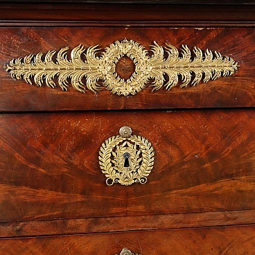 Cassettone Restaurazione francese in legno, marmo e bronzo, '800