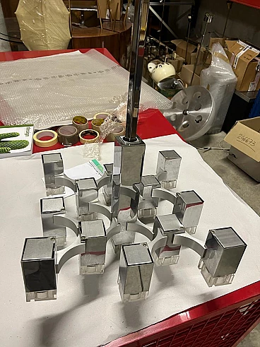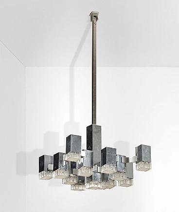 Lampadario a tredici luci Cubic di Gaetano Sciolari per Solari, anni '70
