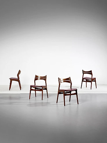 4 Sedie 310 in teak e similpelle di Erik Buch, anni '60