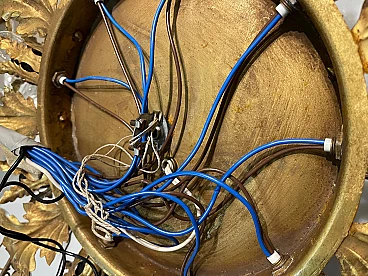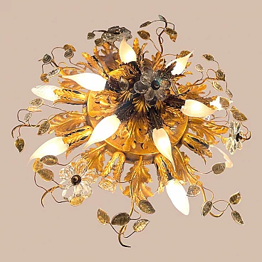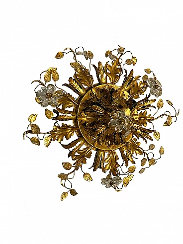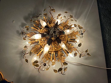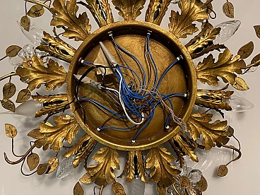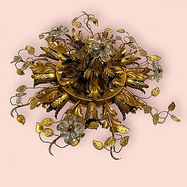 Plafoniera in tôle dorato e vetro di Murano, anni '60