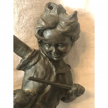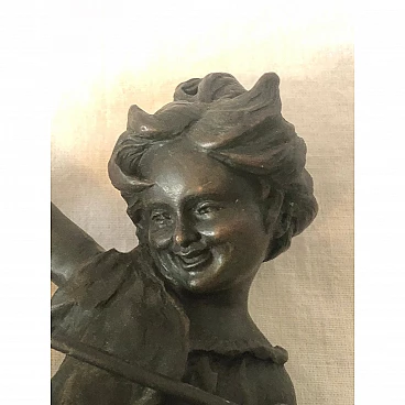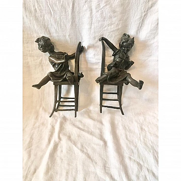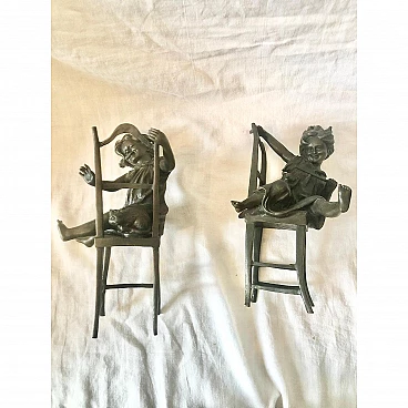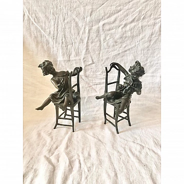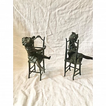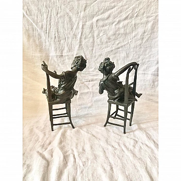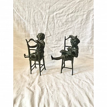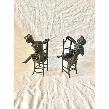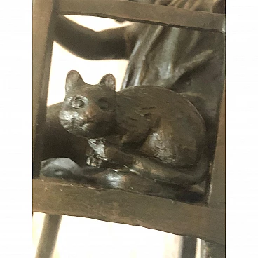 Coppia di sculture Art Deco in bronzo raffiguranti ragazze con gatti, anni '40