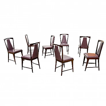 8 Sedie in faggio e skai viola di Osvaldo Borsani per Atelier Borsani Varedo, anni '50