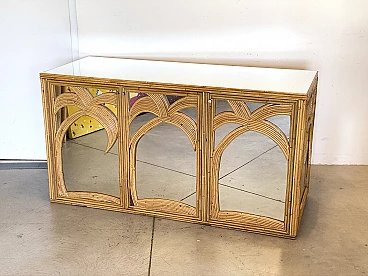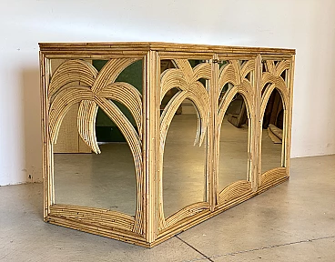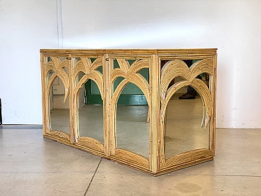 Credenza specchiata in bambù di Vivai del Sud, anni '70