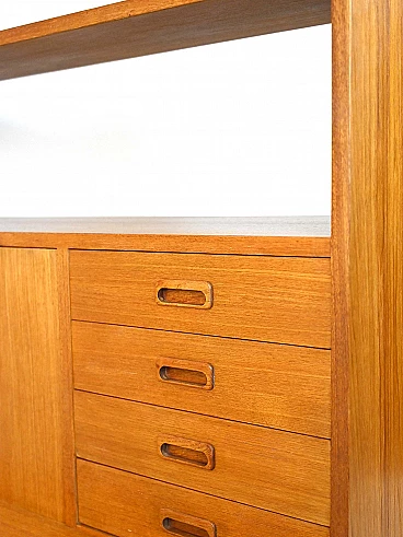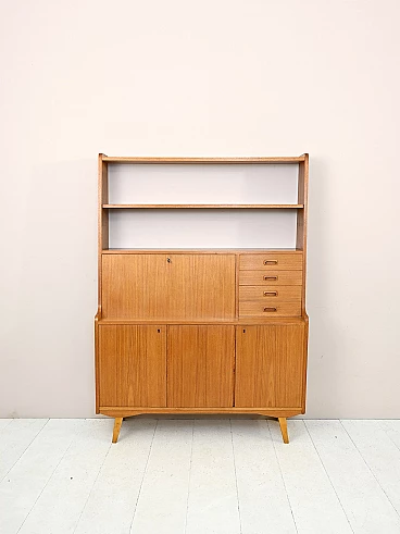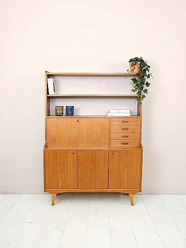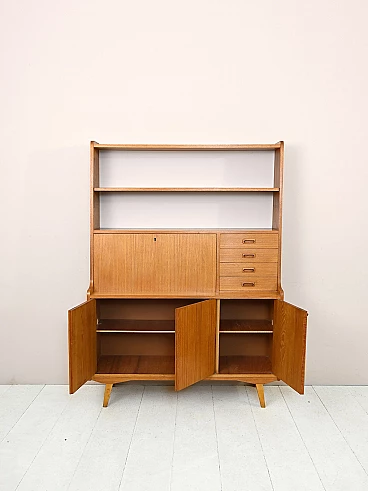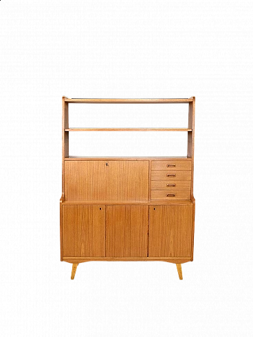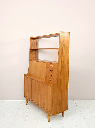 Libreria scandinava in teak con scrittoio a ribalta, anni '60