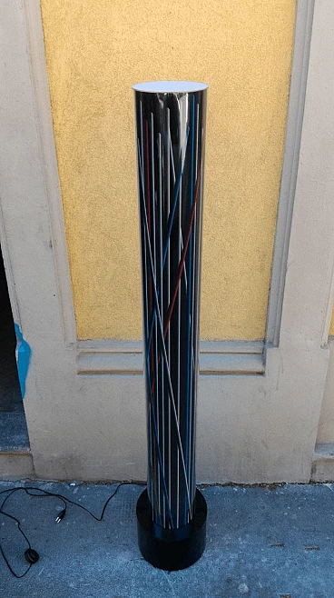 Lampada da terra totem in plexiglass blu, nero, bianco e rosso, 2000